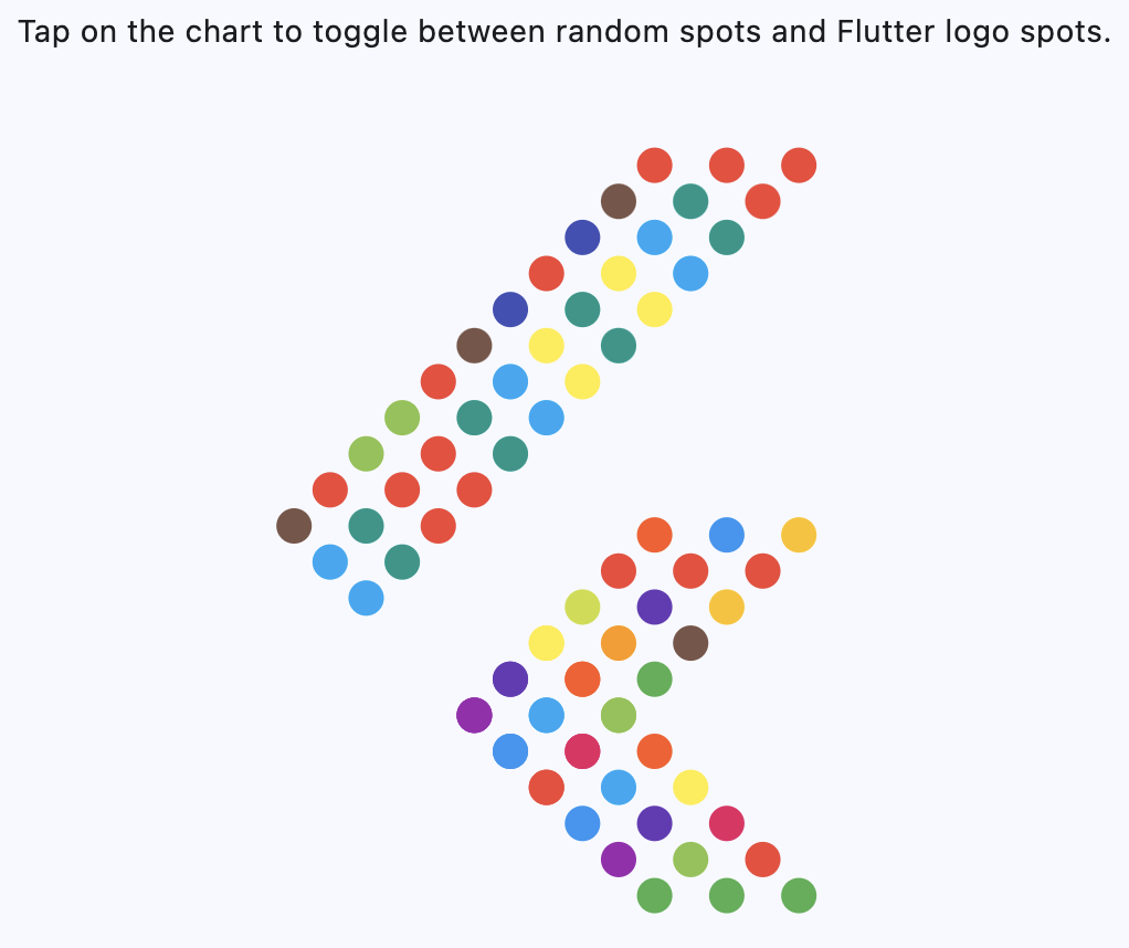 "Tap on the chart to toggle between random spots and Flutter logo spots."